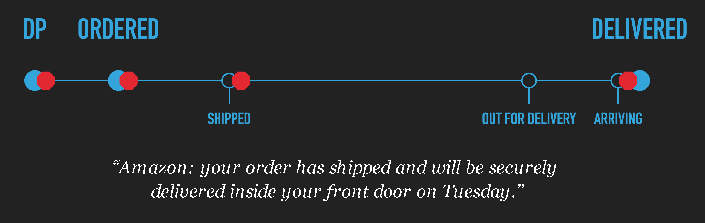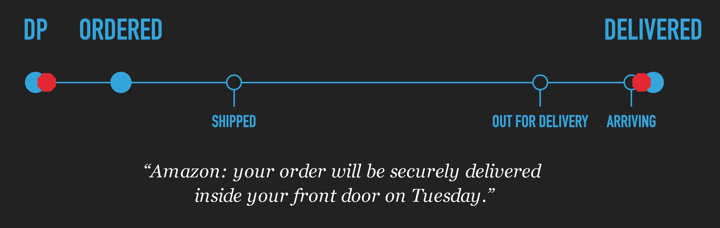 Below is a normal order lifecycle, starting at the Detail Page (DP), and ending with delivery.